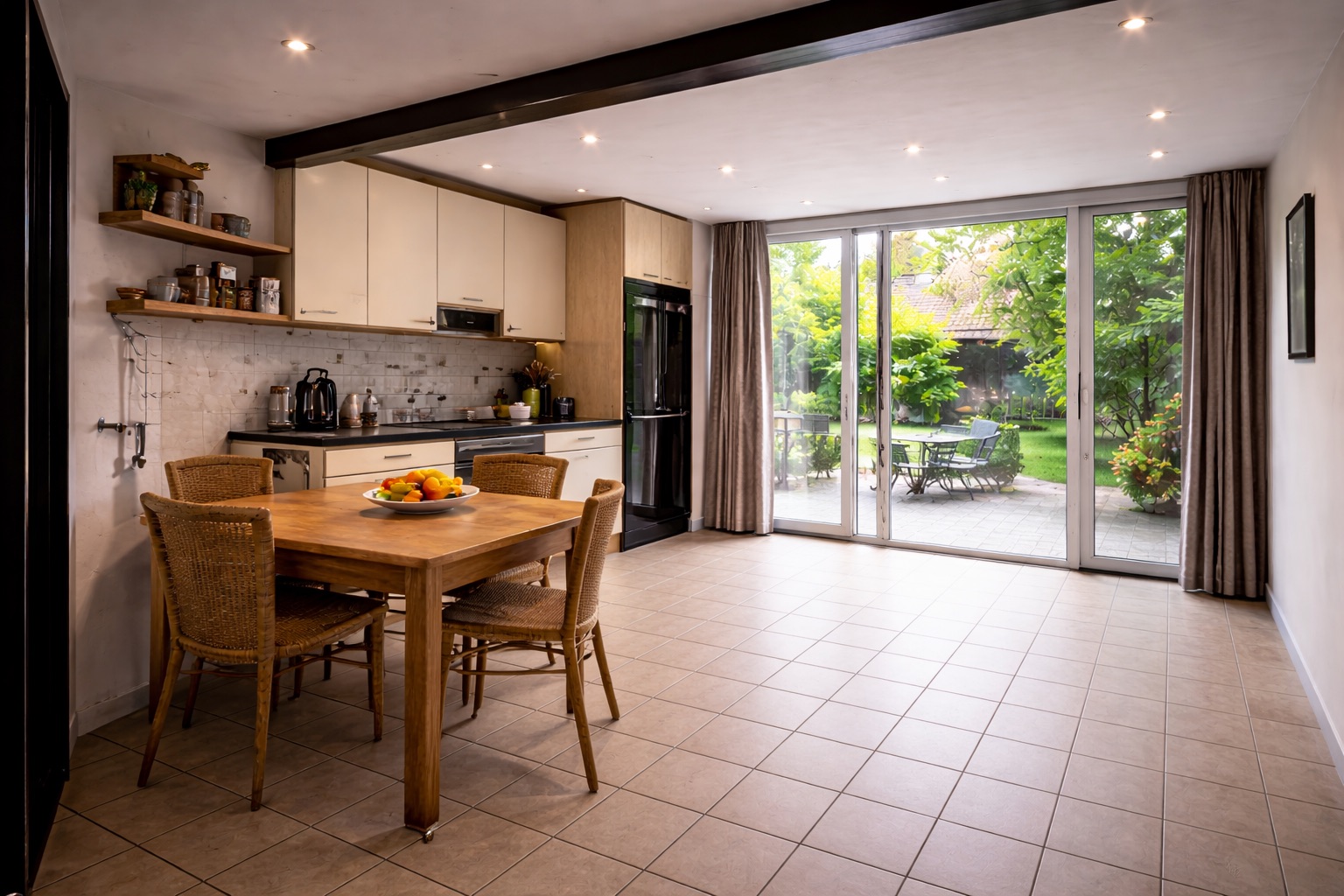 Deze woning beschikte over een gesloten, verouderde keuken met beperkte lichtinval en een inefficiënte indeling. De leefruimte voelde klein en weinig verbonden met de tuin.