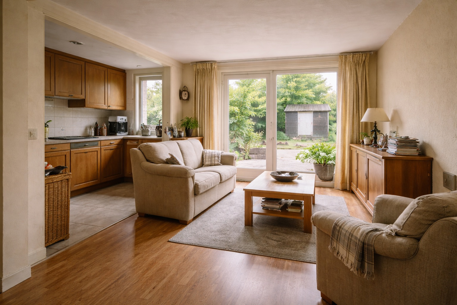 De woning beschikte over een gesloten indeling met beperkte lichtinval en een verouderde keuken. De leefruimte voelde klein en weinig verbonden met de tuin.